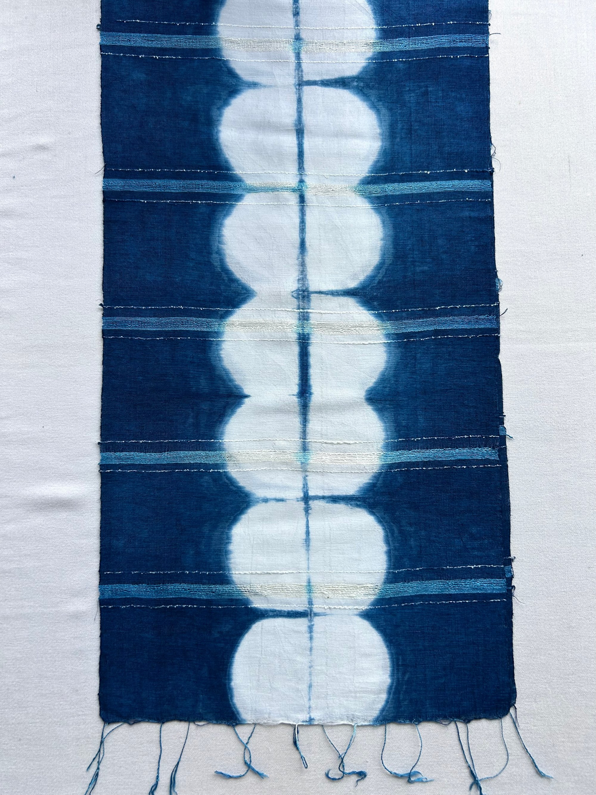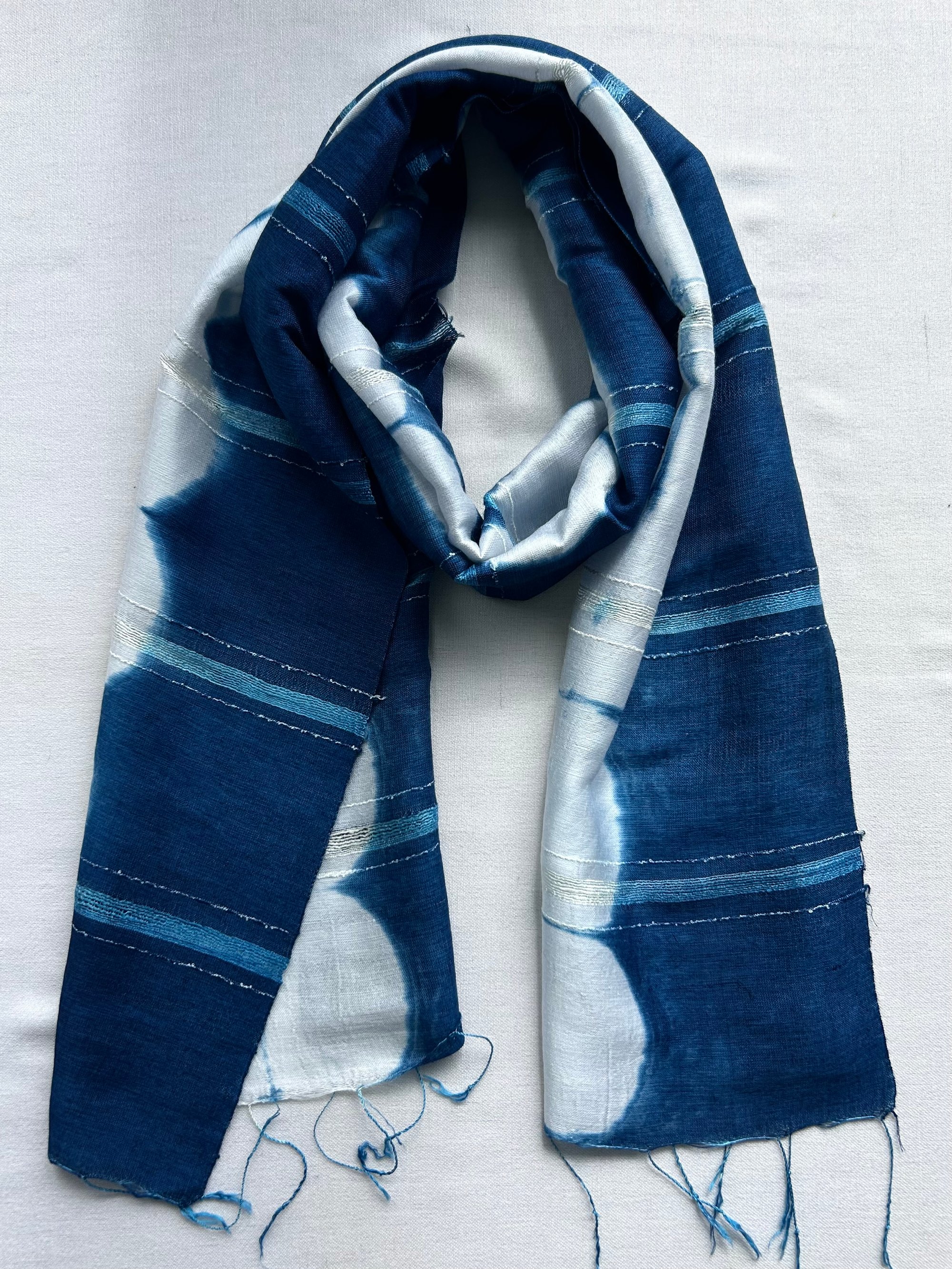 Simple, yet not so simple. These scarfs are made of alternating bands of cotton & silk.