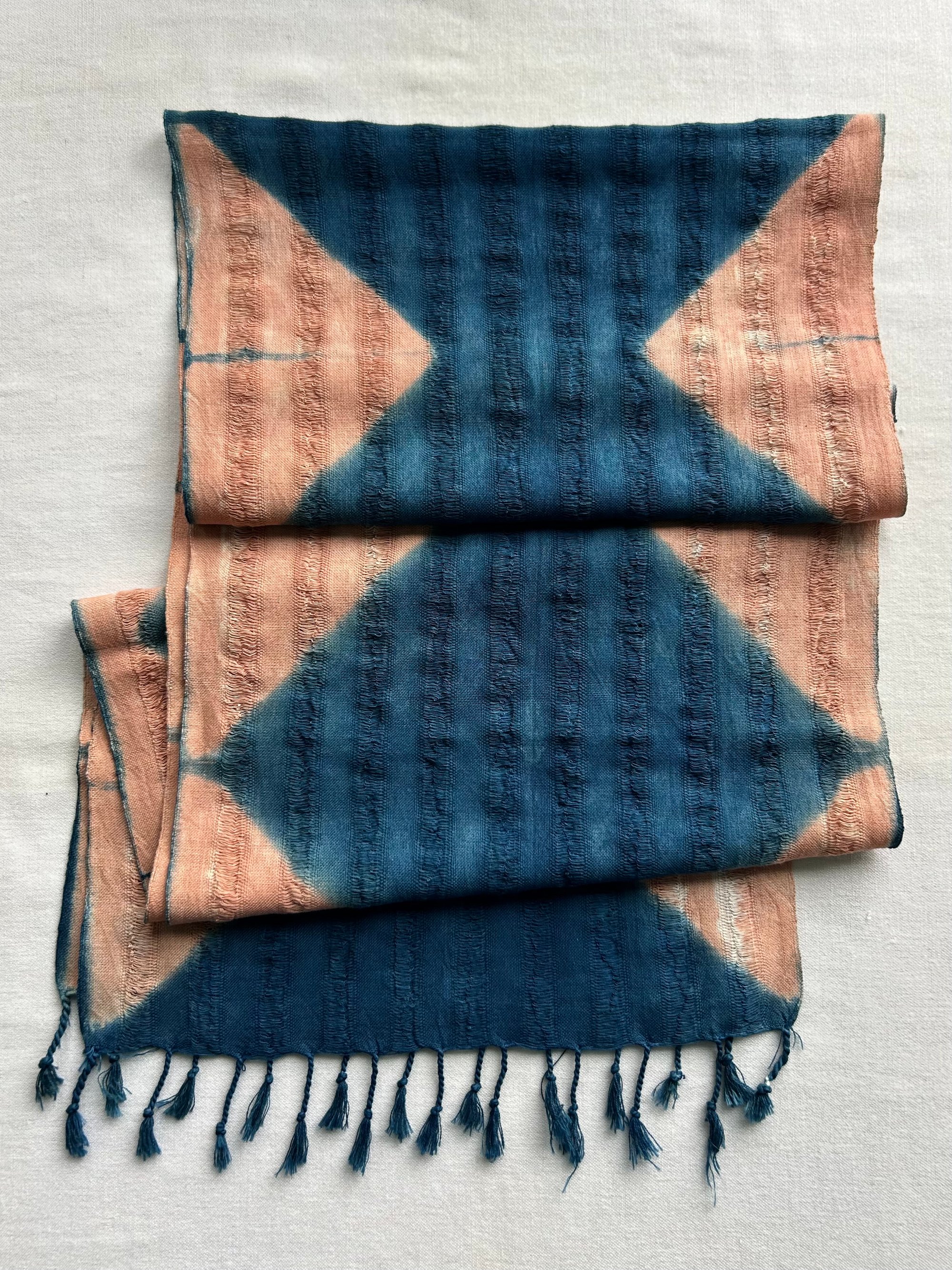 A small casual scarf with alternating open-weave stripes. Great for men or women.