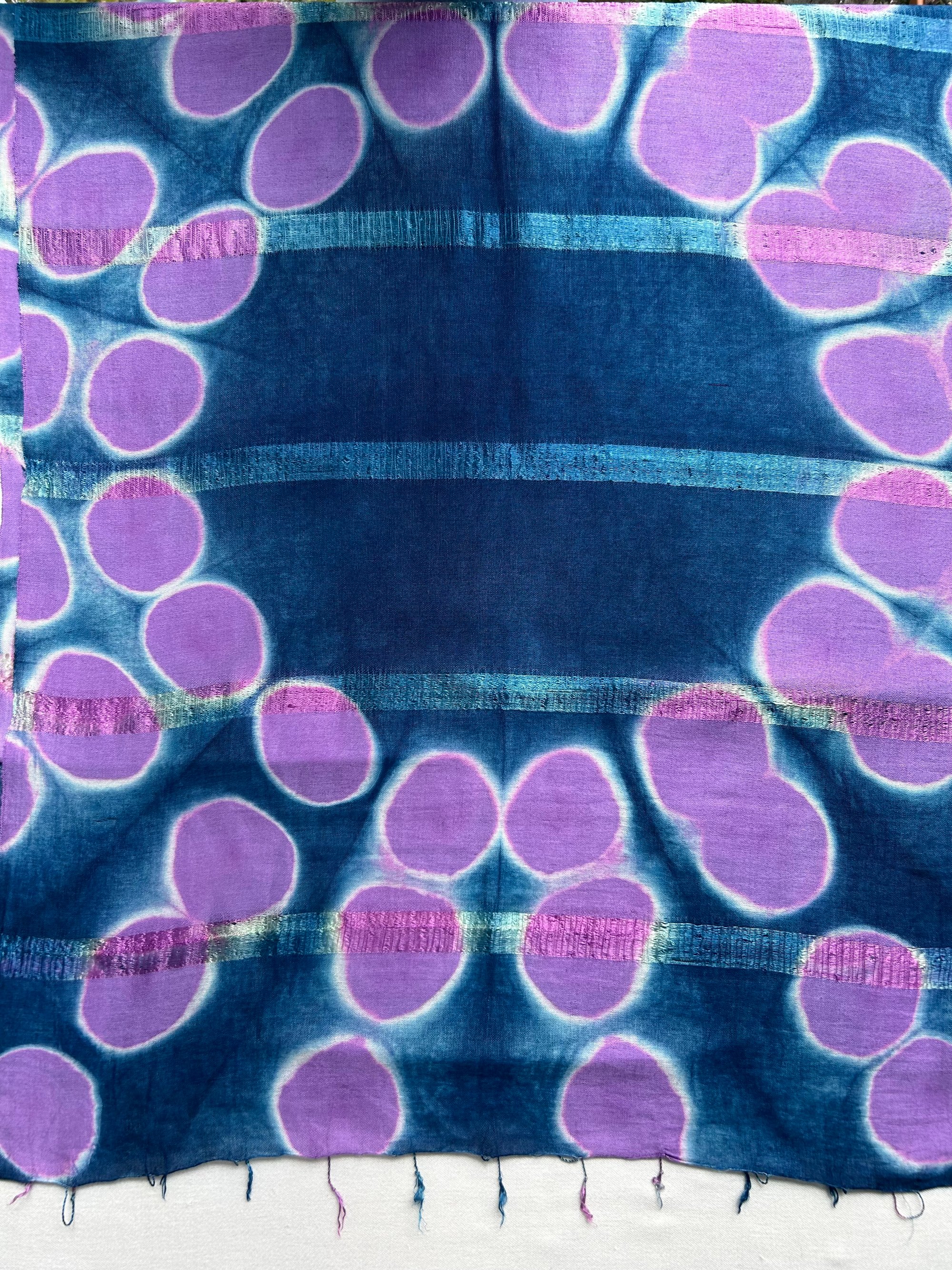 Simple, yet not so simple. These scarfs are made of alternating bands of cotton & silk.